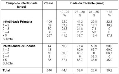 da mulher, o tempo de infertilidade e se a infertilidade é primária ou secundária.