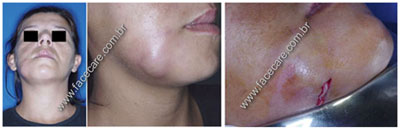 Acima apresentamos uma paciente com uma Infecção Dental (Processo Séptico Odontogêinco) originado por um terceiro molar inferir direito semi-incluso. Observe o inchaço na face que nada mais é do que o pus armazenado no músculo. Necessitou de antibioticoterapia, extração do dente e drenagem extra-oral.