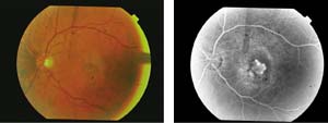 | Fotocoagulação com laser argônico: essa forma de tratamento até pouco tempo atrás era a mais recomendada Os estudos sobre a fotocoagulação dos neovasos extras e perifoveais demonstraram que o tratamento melhorou a acuidade visual. | |