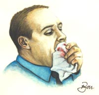 | pode ter sangue no escarro ou tosse com sangue puro | |